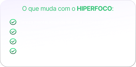 O HIPERFOCO é pra quem já entendeu que energia, clareza e produtividade não vêm do acaso — vêm da estratégia certa.
